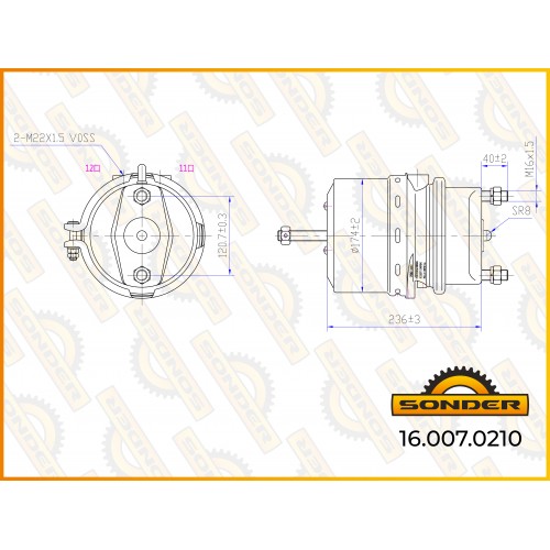 Энергоаккумулятор дискового тормоза левый Type 20/24, DAF; MAN; Mercedes-Benz Sonder